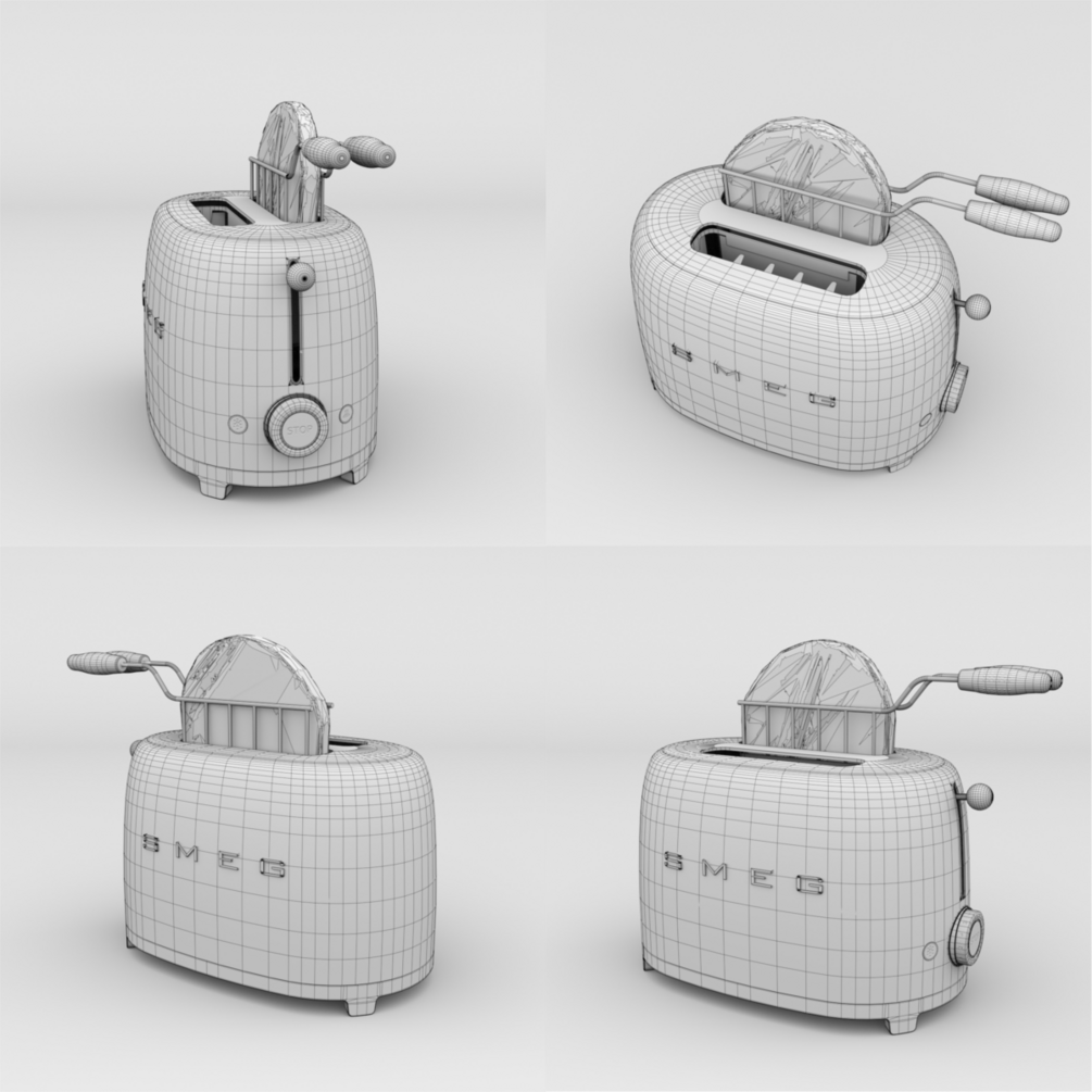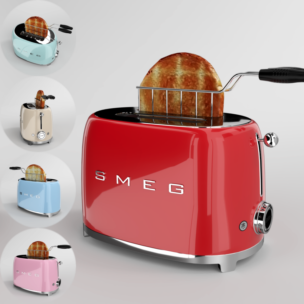 - The model is joined into one mesh named "Smeg_Toaster_[color_name]".